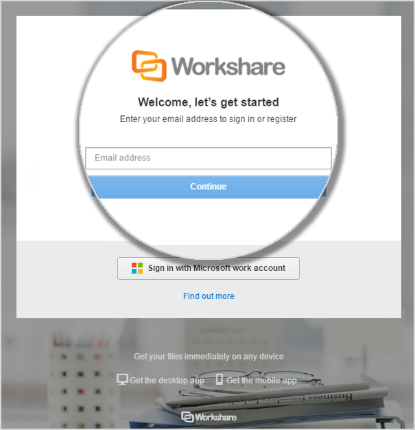 With the “Sign in with Microsoft work account” feature, Workshare takes the primary SMTP address associated with the user's Microsoft work account. If one of your users already has a Workshare account with an email address that’s different from the primary SMTP address, we recommend that the user signs in with their Workshare credentials to avoid ending up with two Workshare accounts.