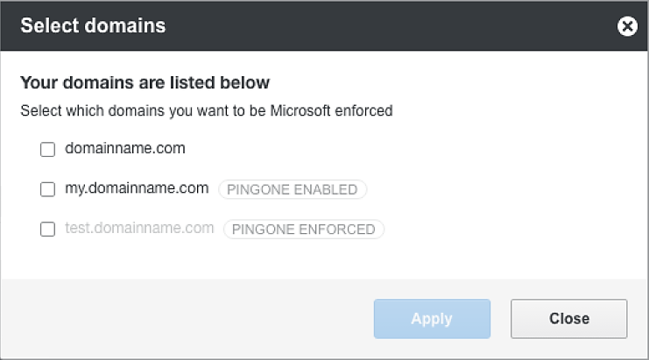 - Click Apply. The selected domains are now enforced – users who enter an email address with this domain will be required to sign in with Microsoft.